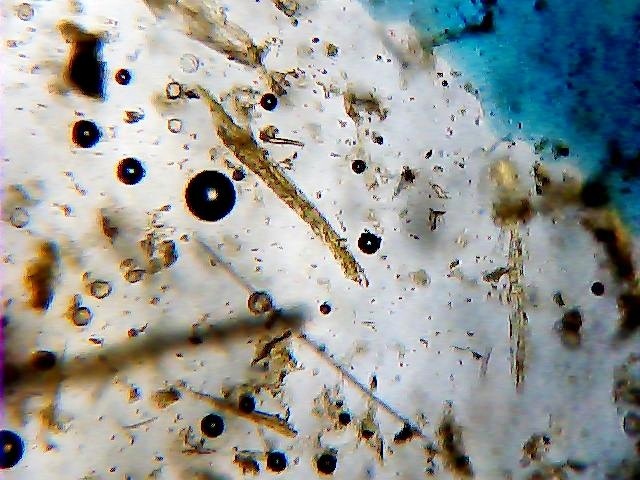 Ik zie luchtbellen, zetmeelkorrels en stukjes hooi
